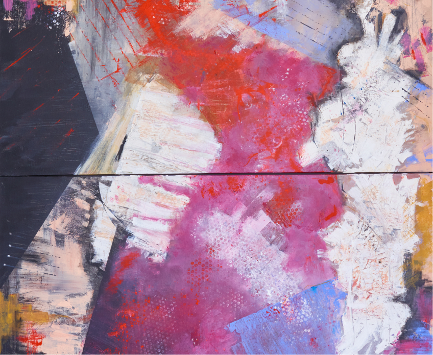 RASPBERRY NIGHT, Diptych 5’x5’ per panel, Mixed Media