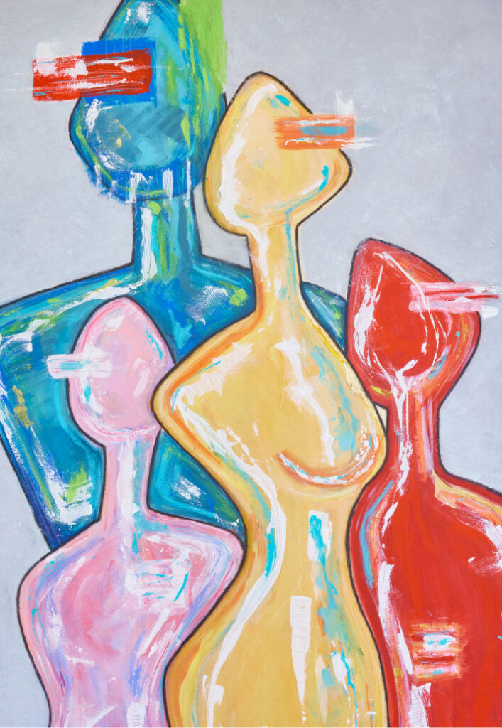 This series showcases these characters that have emerged from my imagination, interacting with each other, blending, and overlapping in various situations and moments.