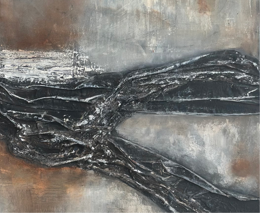 Las obras de esta serie, se caracterizan por utilizar colores neutros y tierra. El protagonismo se lo lleva la textura 3D que cada obra tiene evocando piedras, cavernas, orillas… un mundo simple y primario.