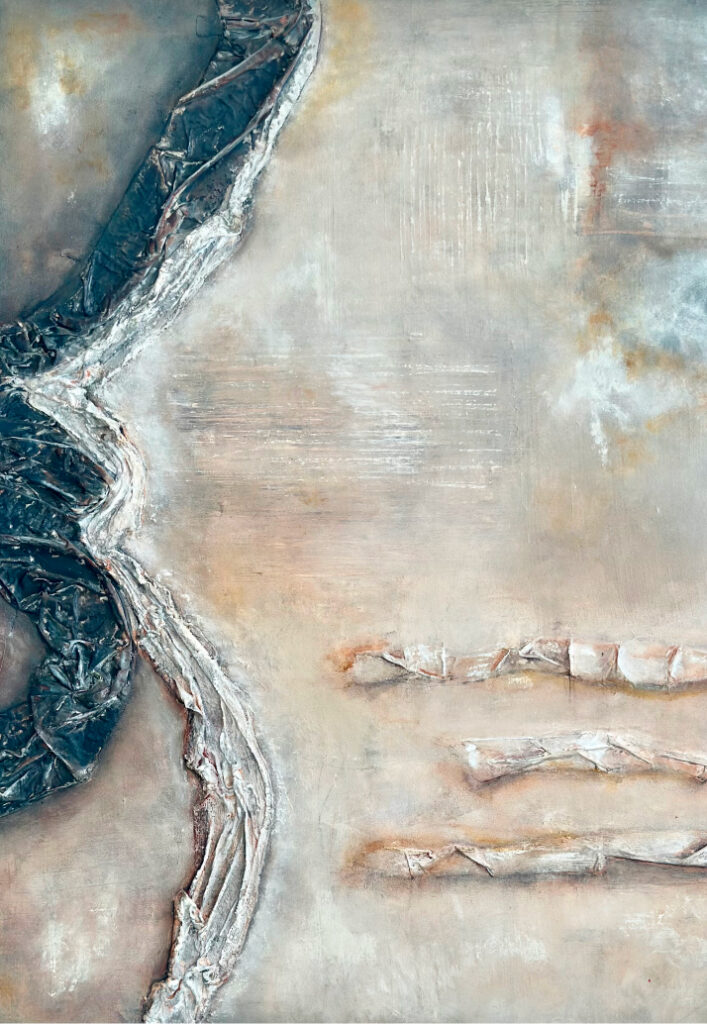 The works in this series are characterized by the use of neutral and earthy colors. The main focus is on the 3D texture that each piece possesses, evoking stones, caves, shores... a simple and primal world.