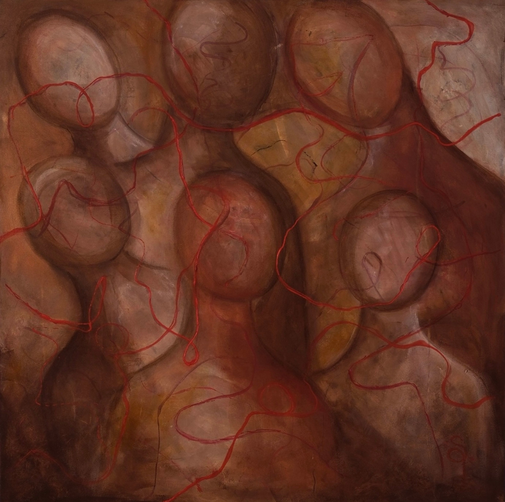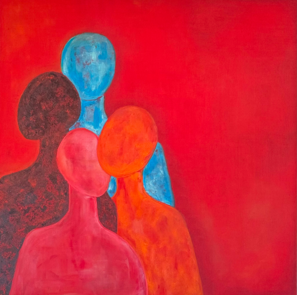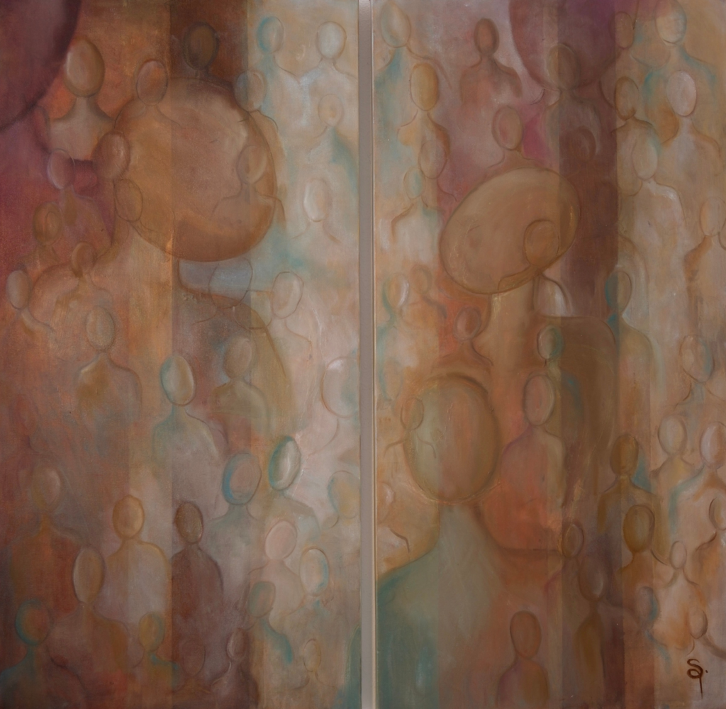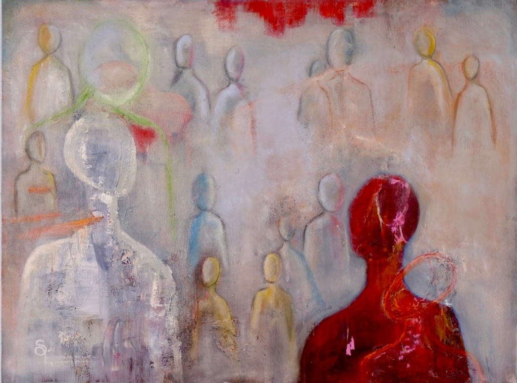 This series explores the unseen connections that bind human beings across time and space. Through layered textures and deconstructed figures, these works evoke encounters between souls suspended in an intangible universe.